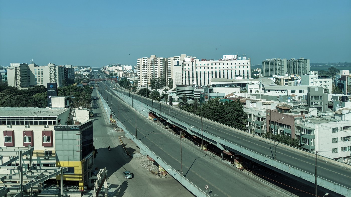 Regresando al tema de la vida afuera, desde mi ventana parece lo mismo diario, a partir de las 7am puedes ver esporadicamente gente yendo a comprar artículos a las tiendas locales, todos los supermercados y tiendas de conveniencia tipo Walmart están cerrados al parecer, así que la gente prefiere salir a las «tienditas» que abren en la mañana a comprar cosas como huevos, leche, pan, queso, frutas y verduras, a lo largo del día se ve un flujo vehicular casi inexistente, no se ven autorickshaws ni taxis, he checado servicios como Uber o Rapido incluso OLA y al parecer no hay conductores disponibles, puedo notar gente en sus motos o carros pero ni cerca a un día regular antes de la pandemia, no he visto autobuses del transporte publico desde mas de dos semanas, y google maps me dice que no hay trafico en ningun punto de la ciudad, lo cual para la gente que conoce o ha vivido en Bangalore es inaudito.