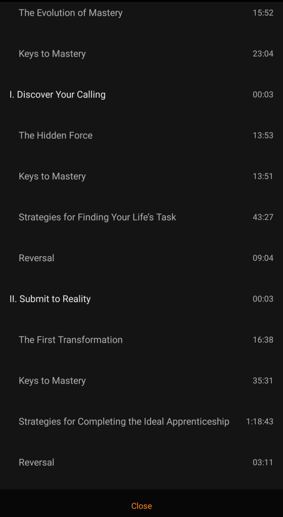 Le pongo un ⭐⭐⭐⭐ 4.5, nomás por lo del indexado que me hubiera gustado mas granular, Acá les dejo la liga de audible: Mastery.