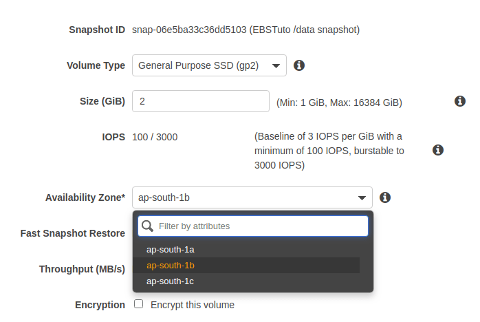 Los EBS volumes están limitados a solo estar disponibles en una Availability Zone( AZ ), pero se puede hacer algo para tenerlos disponibles en otras, en este tuto lo haremos a través de un snapshot y una copia.