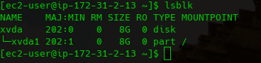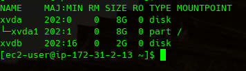 Le voy a pedir que monte en el Device /dev/sdb y le doy Attach, si después de que termine de adjuntarse vamos y checamos de nuevo los mountopoints en la instancia se tiene que ver así: