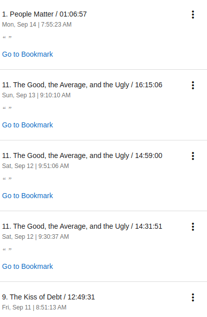 El audio libro dura 16 horas y tantito, así que esta dividido en dos «tomos», el indexado esta -bien- pero como casi siempre, puede ser mucho mejor, ese fue uno de los problemas que tuve con la experiencia de escuchar este audio libro, lo tuve que reproducir a 1x de velocidad, por que de pronto no es tan claro comprender cuando el narrador cambió de tema, literalemte las reglas son los capítulos entonces tienes 10 capítulos y un par de introducción y conclusiones, pero ya adentrado en cada capitulo te das cuenta que hay ahí otros sub capítulos con muchos ejemplos muy interesantes que después tienes que ir a escarbar casi casi a mano, el narrador hace un trabajo decente, nada del otro mundo, tal vez es el estilo de Sharma de escribir que no me gusto tanto, el contenido es bueno y esta muy bien documentado pero a veces esa rayita extra de edición lo hace mas rebuscado de lo que debería ser, para mi gusto.