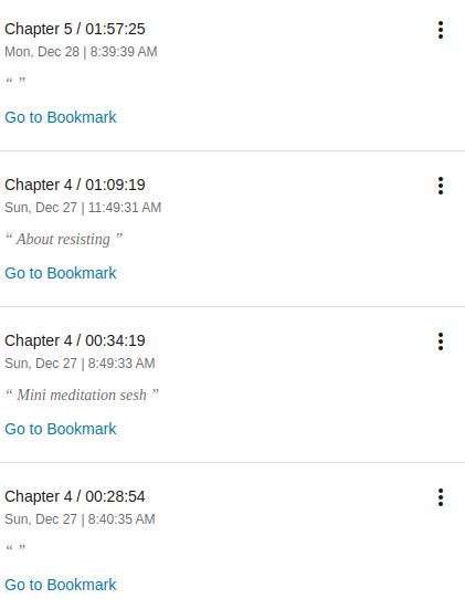 El audio libro tiene un indexado fatal, tiene tantísimos temas y va progresivamente abordando los bloques de niveles que si se apreciaría tener algo mas descriptivo de donde te encuentras, sin embargo conforme fuí encontrando pedazos que se me hacían interesantes, o para reflexionar, o directamente que puedo re-usar, como el caso de las preguntas que mencionaba antes, inmediatamente cree bookmars, para cerrar este #DdA, te recomendaría este libro si estas interesada en temas new age, filosóficos, espirituales y por ese estilo, de otro modo ( evidenciando que eres una persona de bajo nivel energético 😋) solo te va a aburrir, con todo y todo le pongo 3/5 ⭐⭐⭐, por que a pesar de si salir con ondas muy wishy-washy para su servidor, te incita a reflexionar y «filosofar» sobre otros temas, y personalmente si me ayudo a tal vez no esclarecer cosas si no a trazar un nuevo vector para continuar con mi desarrollo, acá te dejo la liga por si te quieres aventurar a escucharlo en Audible: Levels of Energy.