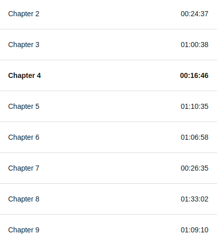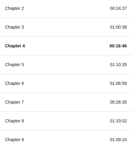 En cuanto al audio libro en si, me decepcionó mucho que a pesar de que el narrador va mencionando el numero de los capítulos, el indexado del audio libro hace absolutamente nada para describir que rayos estas escuchando, una lista de numero es todo lo que tienes y es todo lo que harán por ti.