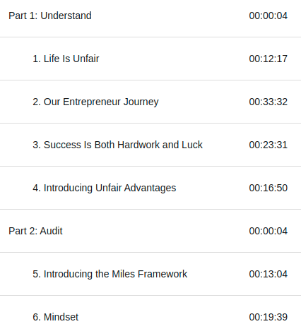 Como conclusión es un libro enriquecedor, pero que si no estas en la arena del «self improvement» o pensando en-o ejecutando en una startup difícilmente vas a obtener mucho valor de las 7 horas que requiere de tu tiempo, así que lo recomendaría solo para ese tipo de personas, con todo y todo le voy a poner un 4/5 ⭐⭐⭐⭐, y como ya es costumbre, aca te dejo el link para que te lo escuches: The Unfair Advantage.