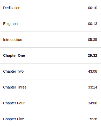 Es un libro de mediano tamaño pues dura aproximadamente 9 horas y media, no esta narrado por el autor, pero el narrador hace muy buen trabajo incluso pronunciando estos nombres de los personajes que mencionaba antes, fuera de eso no tuve dificultad escuchándolo a 1.5X, el lenguaje es coloquial y nada ostentoso.