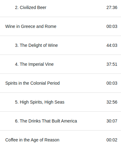 Ya para cerrar, como ya mencione antes, fue un libro que me gusto mucho, aunque un poquito fuera de lo que suelo escuchar, y estoy contento y satisfecho con el resultado, en cuanto al audio libro en si, es de mediano tamaño, dura al rededor de 7 horas y media, el narrador hace un muy buen trabajo y el indexado es justo como debería ser, de nuevo, muy satisfecho y lo recomiendo si te interesa la historia y eres fan de alguna de las bebidas que mencione antes, aunque de todos modos, el libro es una experiencia recomendable para cualquier persona, mínimo te llevas un par de: «ohhhh…«, con todo y todo le vamos a poner 4/5 ⭐⭐⭐, como ya es costumbre acá te dejo la liga para que te lo escuches: A History of the World in 6 Glasses.