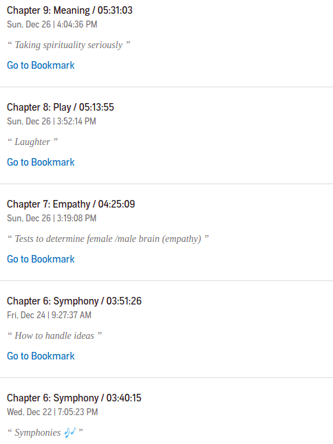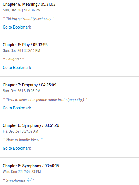 El audio libro como tal dura poco mas de 6 horas así que lo sigo catalogando como de corta-mediana duración, afortunadamente la narración corre a cargo del autor lo cual lo vuelve excelente, y el indexado es el necesario, puedes de manera sencilla regresar a un capitulo en especifico, aunque opino que si me beneficiaría mas si la parte de recomendaciones y ejercicios tuviera su propio sub capitulo, aunque yo se que en ese sentido ya casi estoy rayando en el lujo.