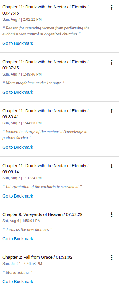 Para cerrar, fue un libro bastante interesante, que te hace al menos cavilar y cuestionar, me sentí bastante cómodo escuchándolo a 1.5X y aunque no hice muchísimos Bookmarks, si guarde un par para puntualizar ideas en el libro, en general lo recomiendo si te laten esos temas como entre historia, religión, o de plano si disfrutaste esas películas del Codigo DaVinci y demás, como es costumbre para concluir, le voy a dar 4/5 ⭐⭐⭐⭐ por que esta muy bien hecho el audio libro y ademas es interesante, si te lo quieres escuchar acá te dejo la liga: The Immortality Key.